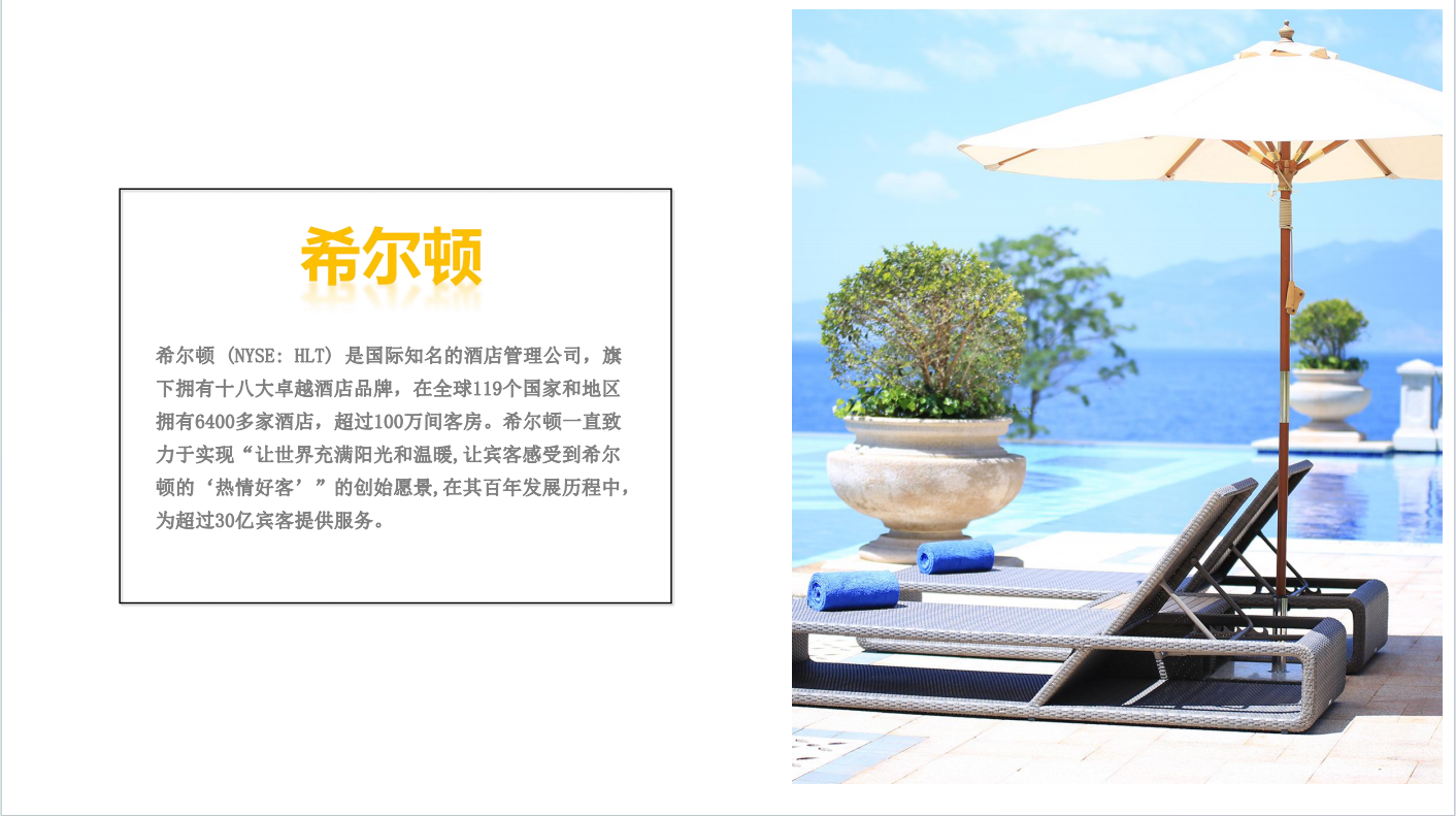 全(quán)球18家屢獲大(dà)獎的超豪華型酒店Conrad位於歐洲、美洲、亞太地區和中東(dōng)/非洲等地(dì)國家的首府和充滿異國情調的度(dù)假勝地。Conrad通過(guò)建立並保持最高級別的服務水平,本著著名的“Conrad服務文化”理念,為商務和休閑遊客創造價值。酒店客房舒適精美、餐廳高貴典雅(yǎ)、健身俱樂部設備完善、會議配(pèi)套設施高檔齊全。所有酒店的客人都能享受到希爾頓全球預訂中心和其知名客戶忠誠項目Hilton HHonors (R)的服務。美國境內的希爾頓酒店則(zé)由希(xī)爾頓酒店管理公司(HHC)擁有並管理。